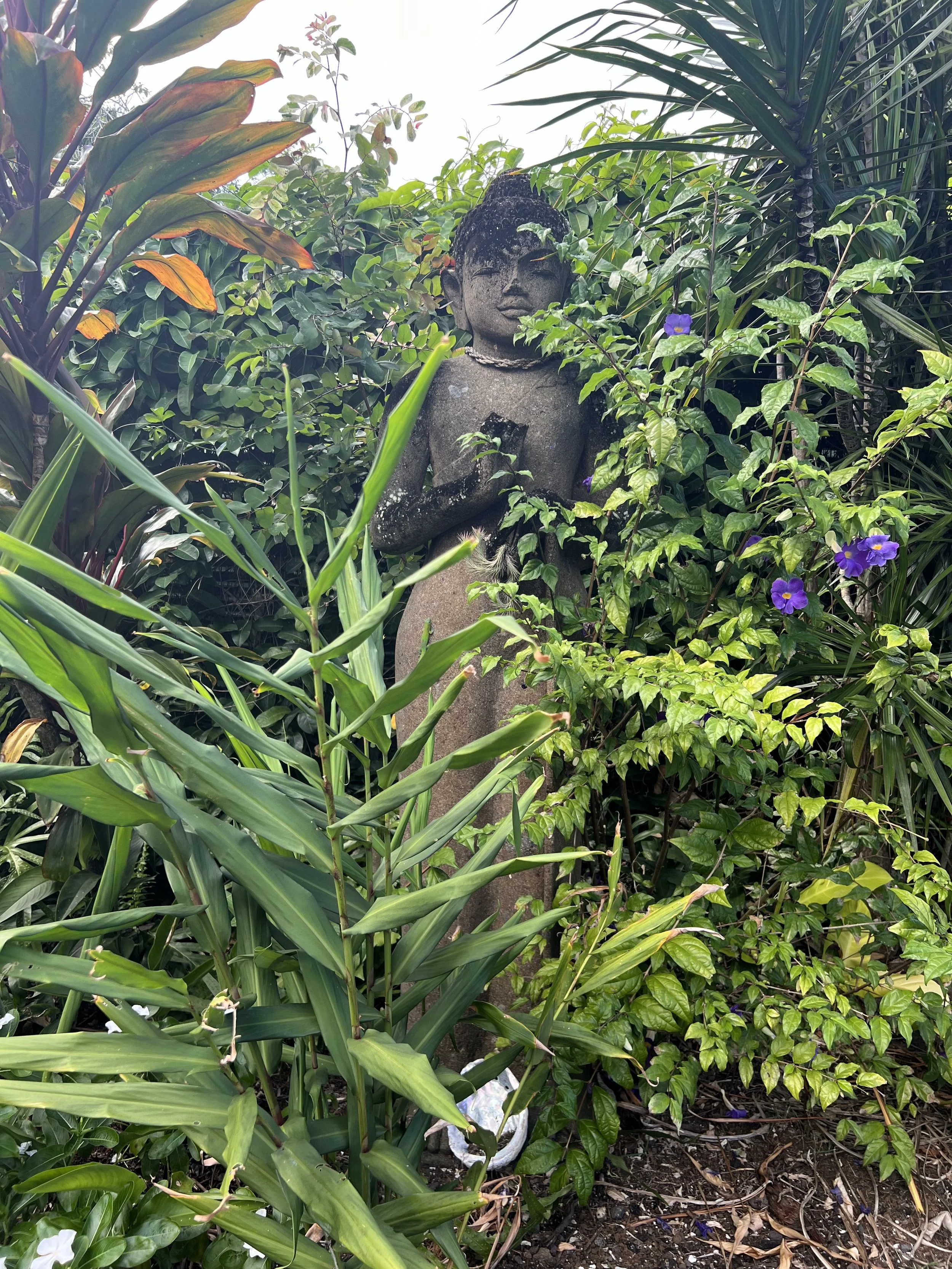 The ceremony was the best one for me yet. And, at the entrance, Mieke, Amy's childhood friend whom we often ran into on our trail hikes, big, beautiful, beaming blue eyes greeted me. Her hug and warmth reminded me of the sincere love Amy's hugs flooded me with. It was the best feeling to be near another Amy love. And I had brought Amy's Ashes to put on the altar and asked if I could leave some somewhere on their land. Amy definitely appreciates sanctuary and when I had reached out to Amy and learned she hadn’t been well, Amy was staying with a friend on that land just a few blocks away. It seemed appropriate… (although right before leaving Kalapana Moana in Pāhoa big island, I had also gained permission from the land steward to leave some in the Buddha garden, which I did)… Mieke and I together each said prayers of gratitude to our soul sister placed yellow rose petals, and some of Amy's ashes, and hugged each other in the ways Amy would hug us. It was truly divine. Deeply meaningful and uplifting to us both.